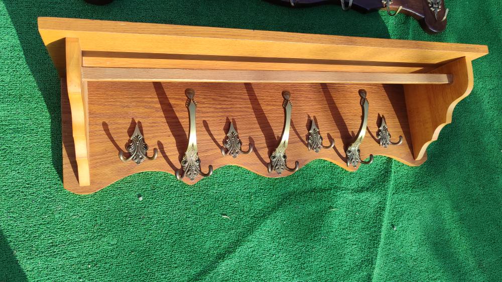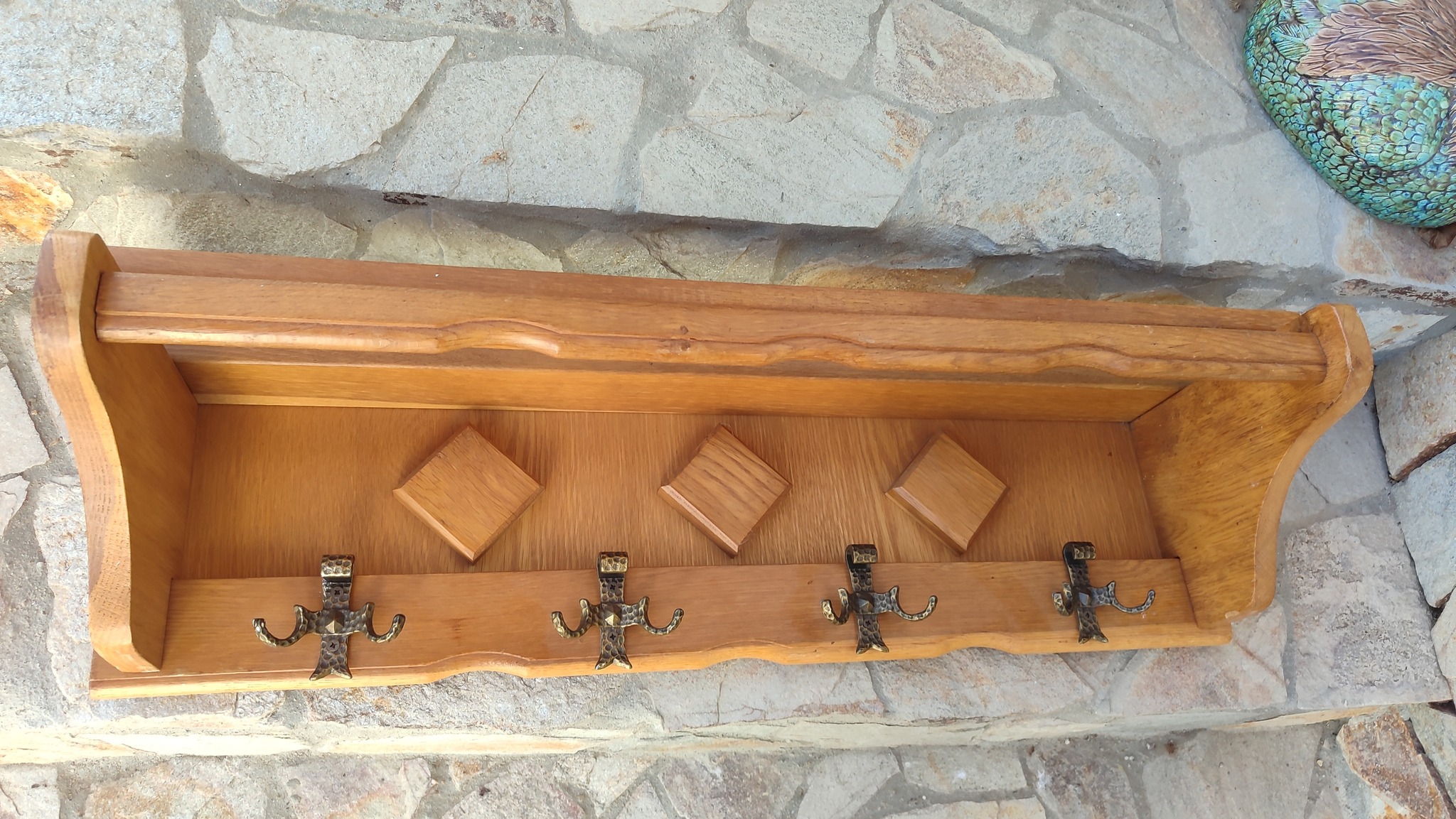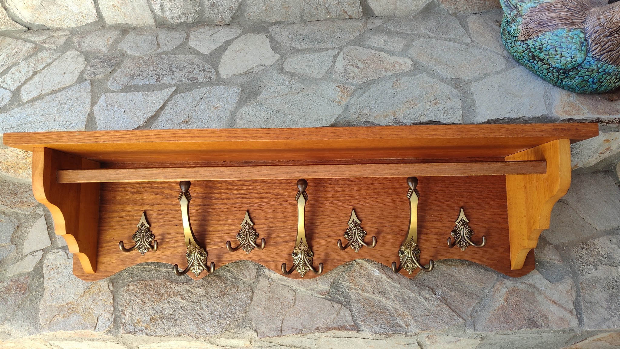 Красива стенна дъбова закачалка с рафт и 7 бр двойни окачвачи!