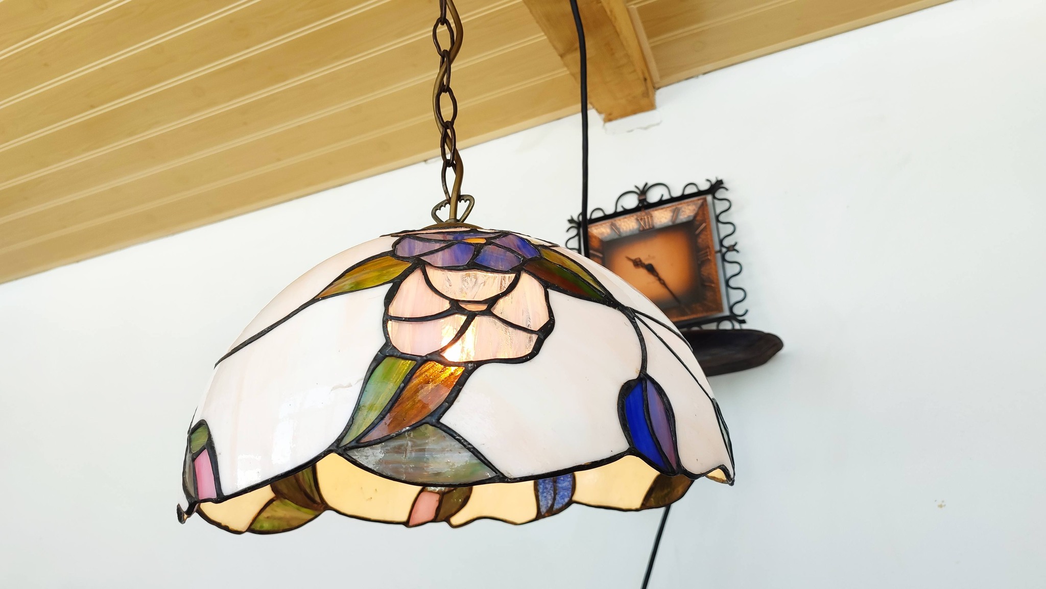 Елегантна висяща лампа в стил Tiffany с красив абажур с флорален мотив!