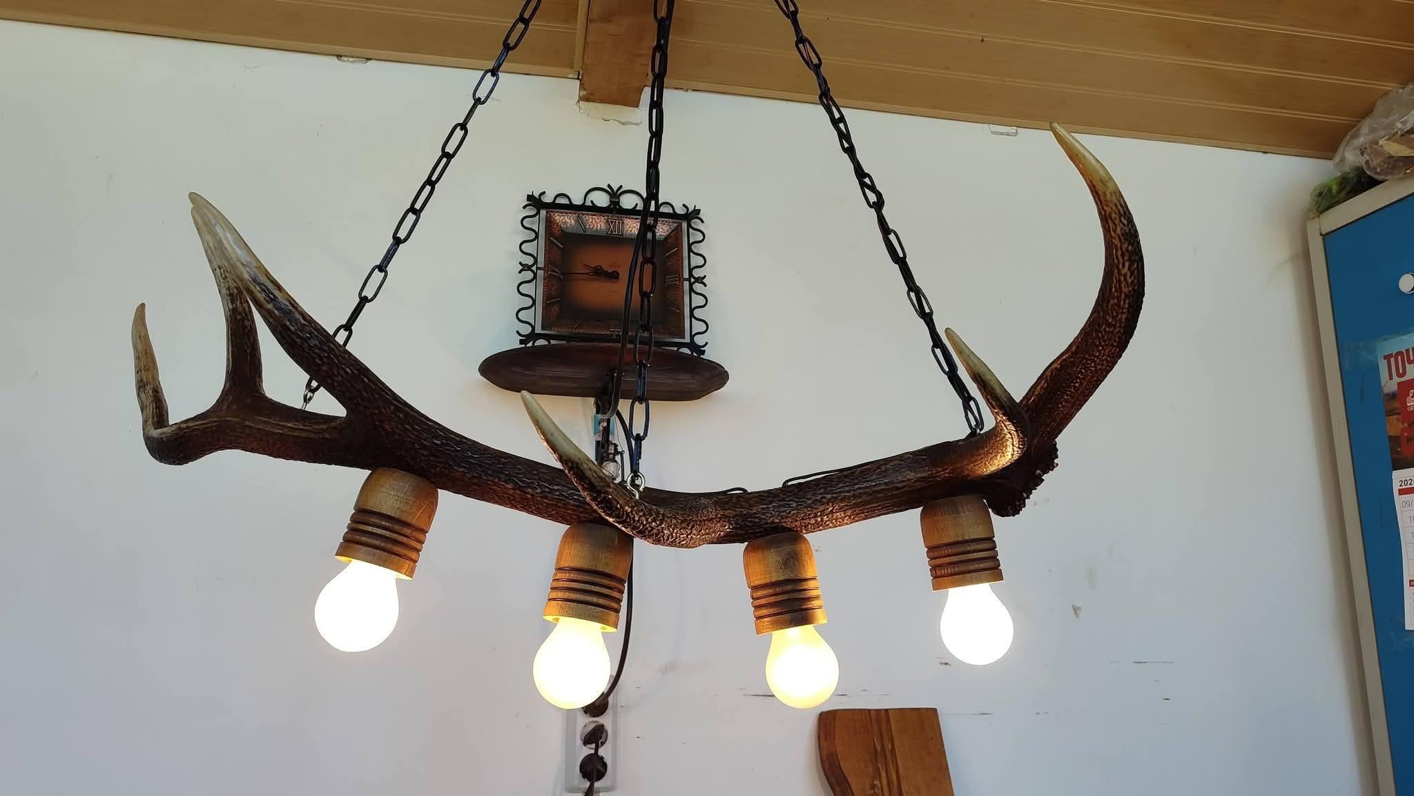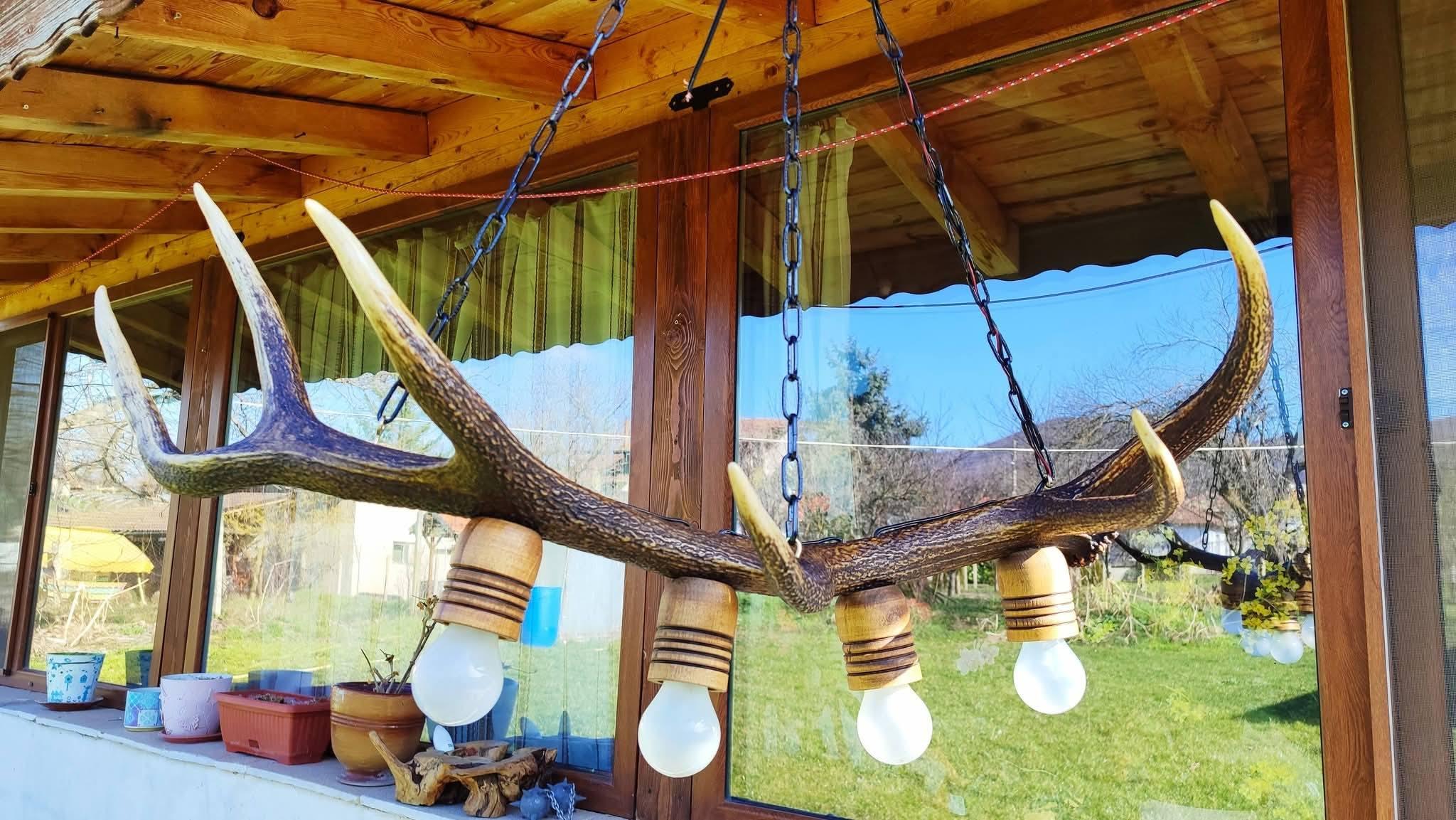 Ръчно изработен полилей от масивен рог на елен с ръчно изработени дървени чашки!