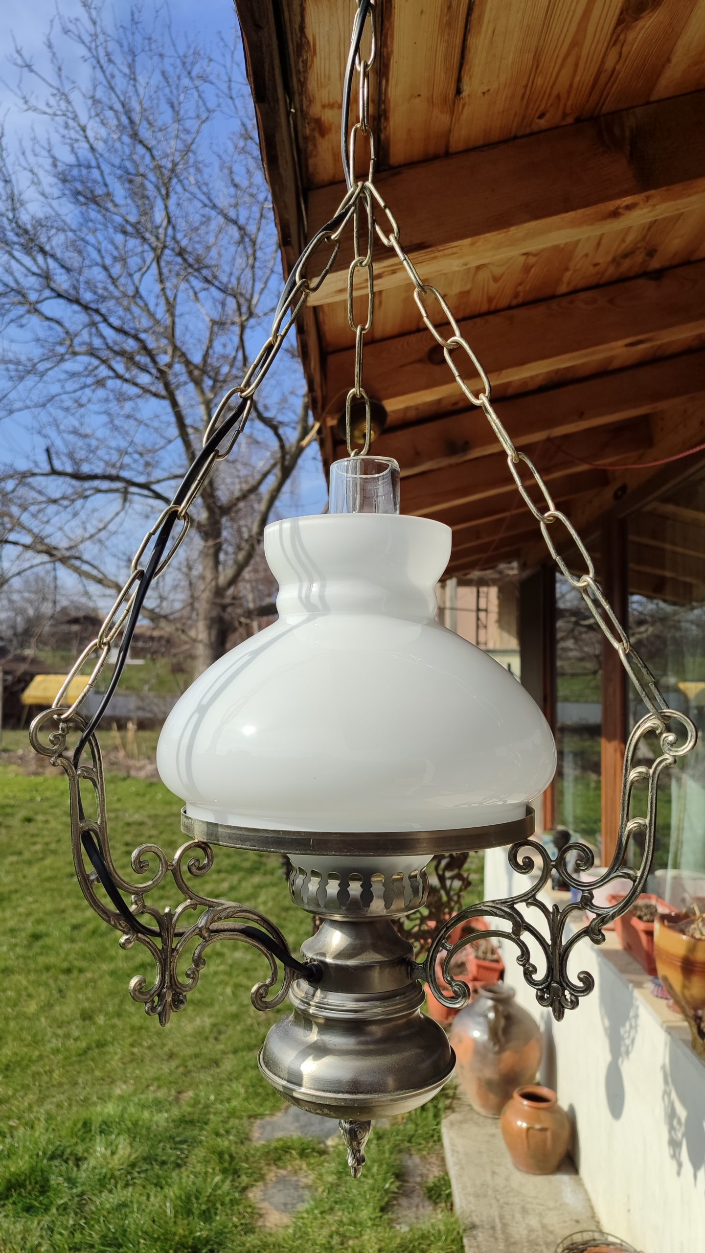Красива масивна дъбова закачалка с рафт отгоре, порцеланови плочки със селски мотиви и месингови двойни окачвачи с 🦁 лъвове!