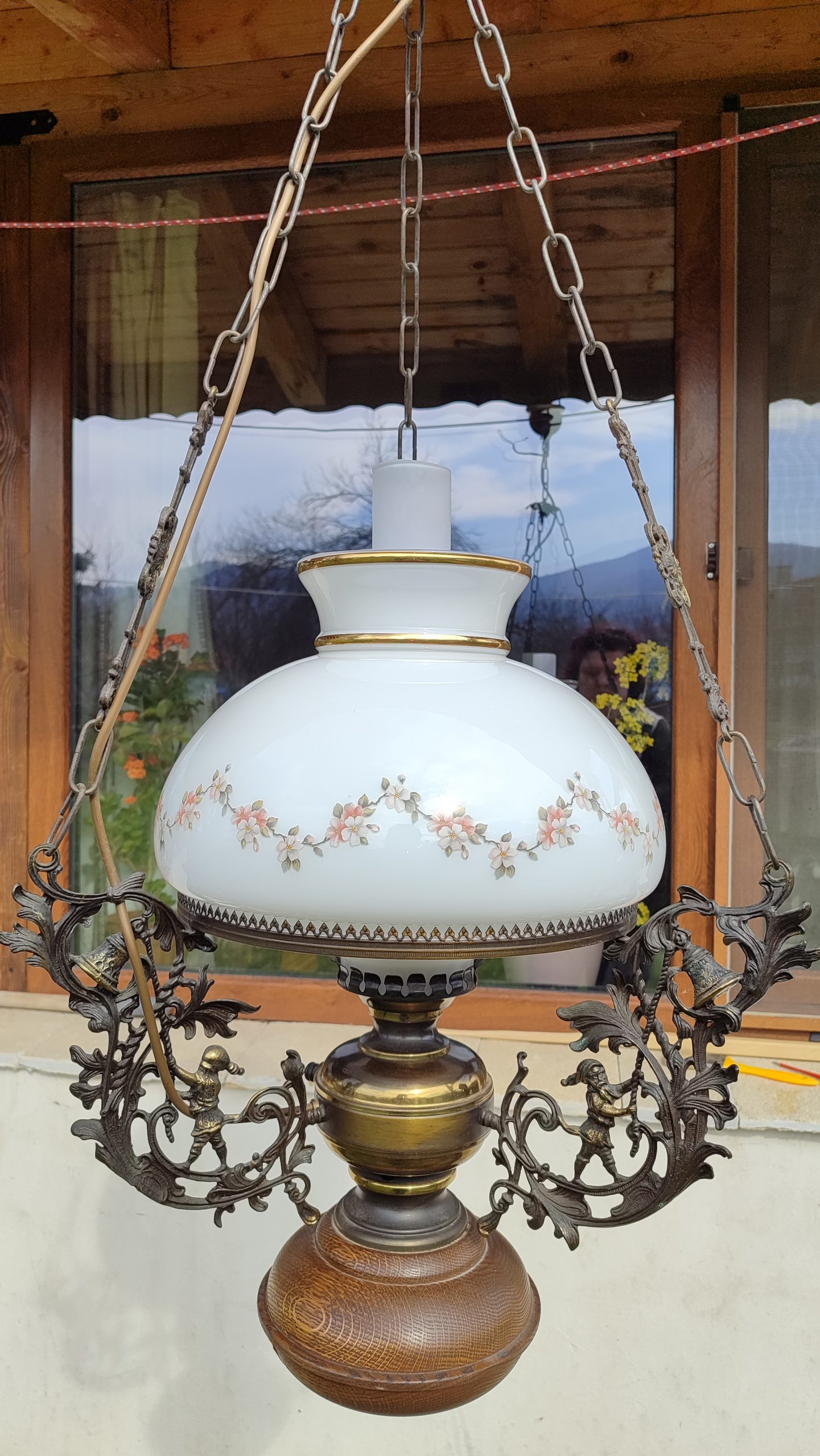 Красива масивна дъбова закачалка с рафт отгоре, порцеланови плочки със селски мотиви и месингови двойни окачвачи с 🦁 лъвове!