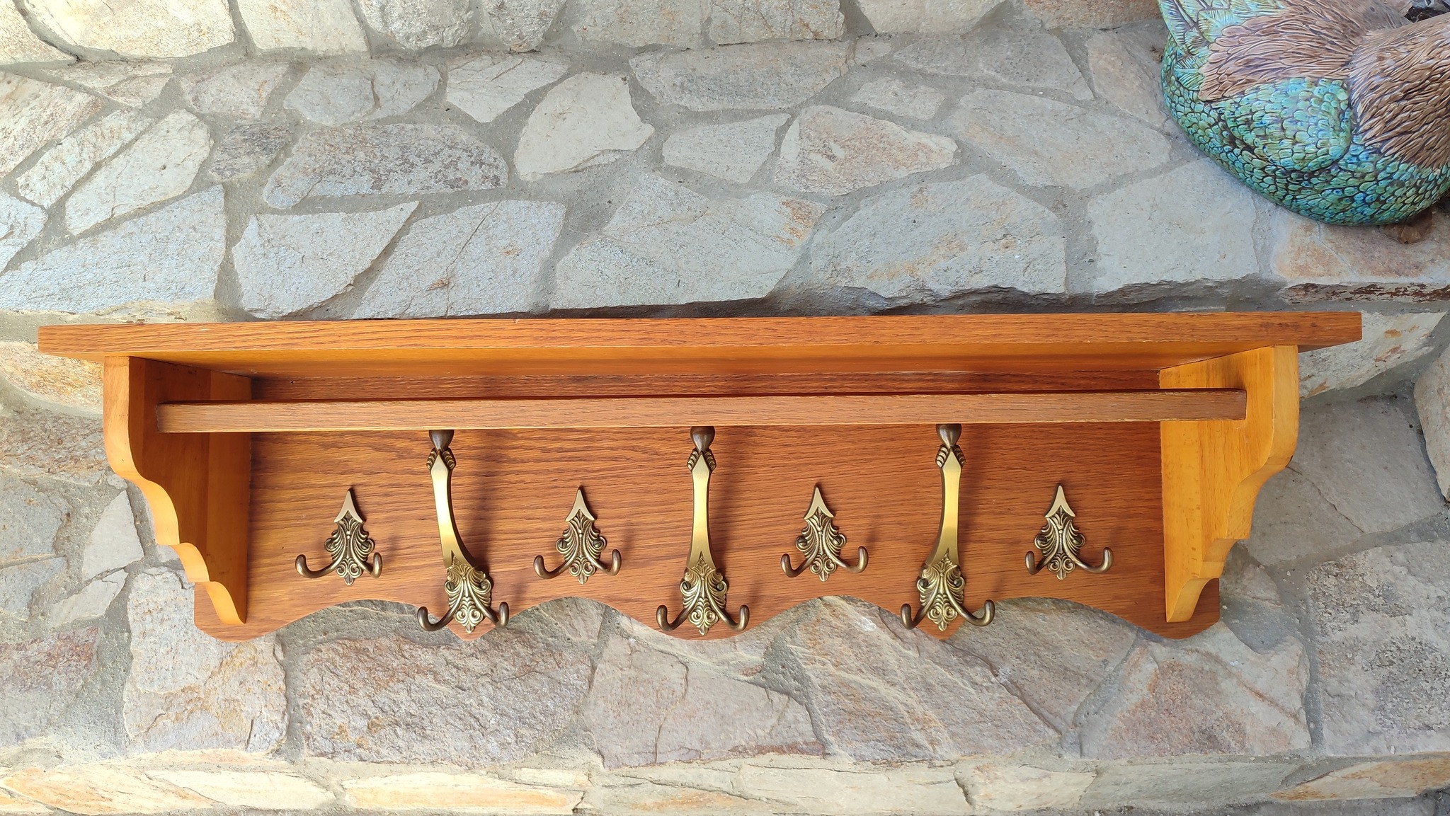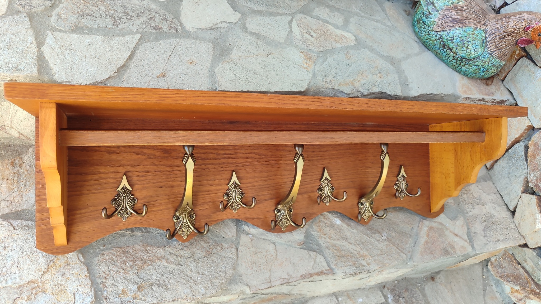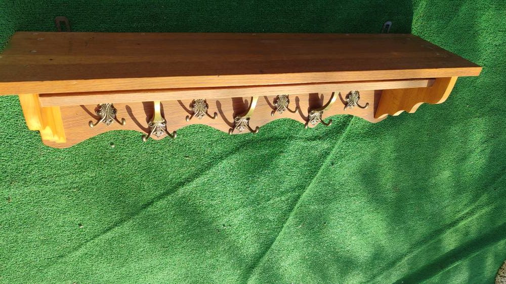 Красива старинна закачалка от ковано желязо с красиви орнаменти и рафт отгоре!