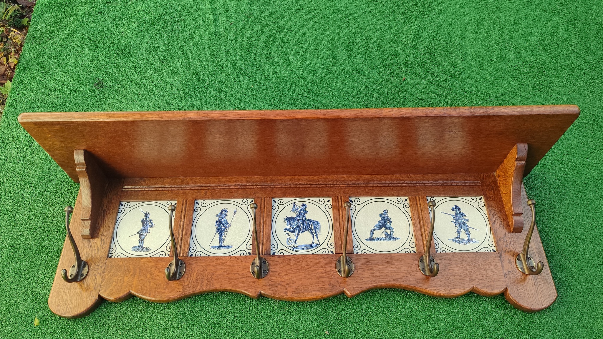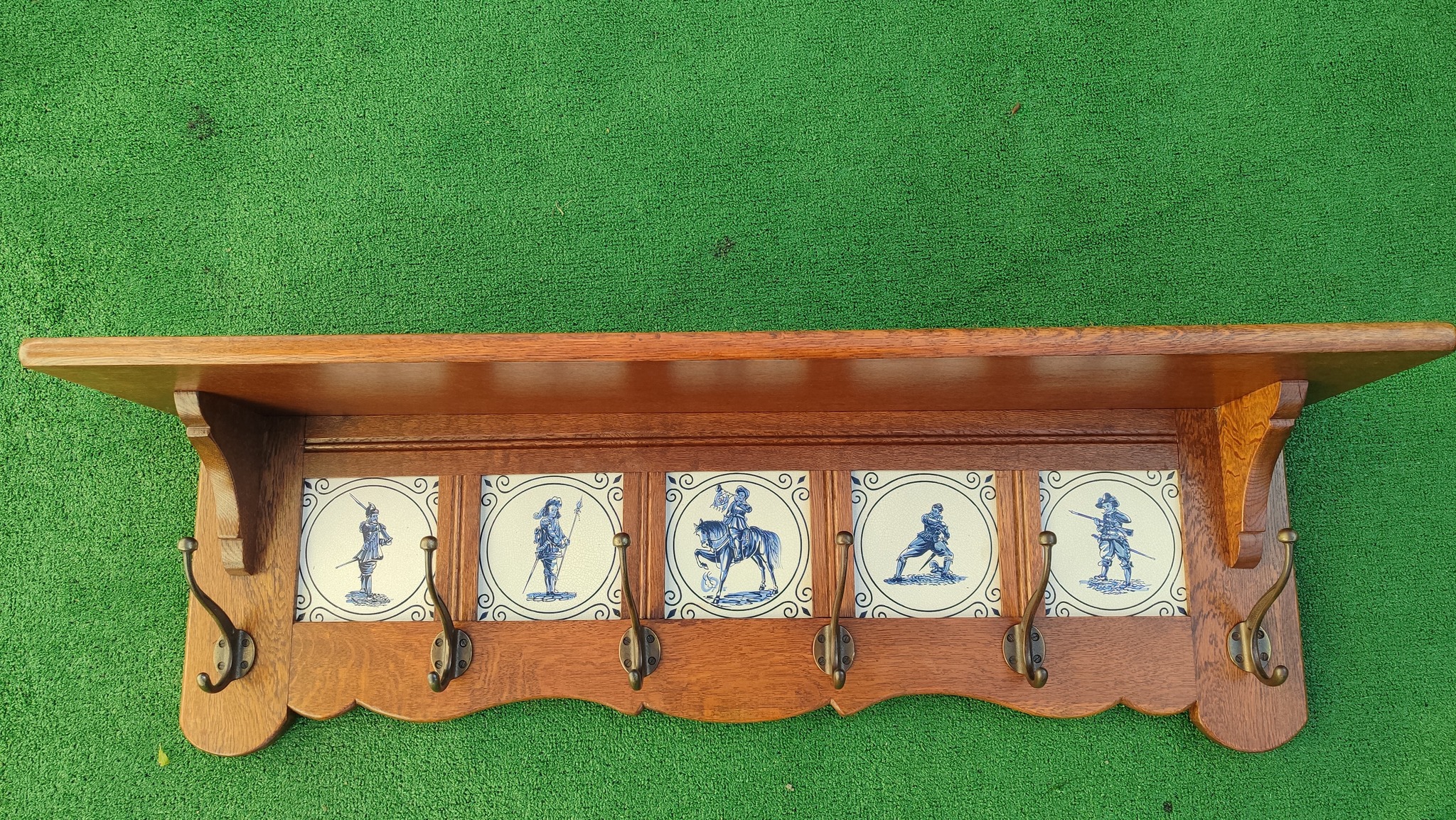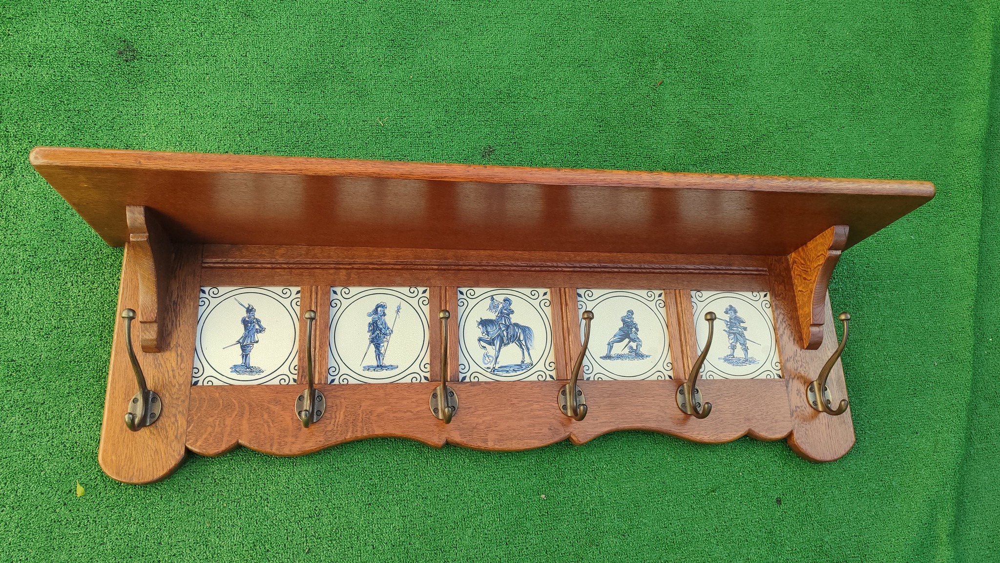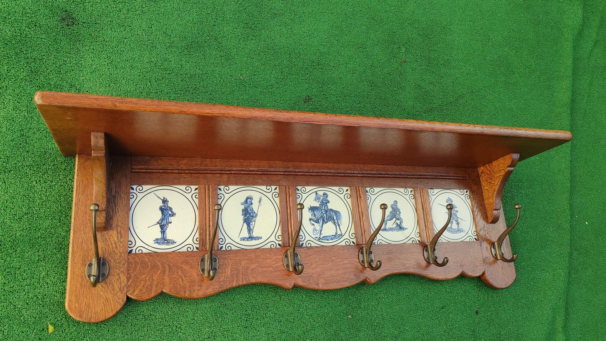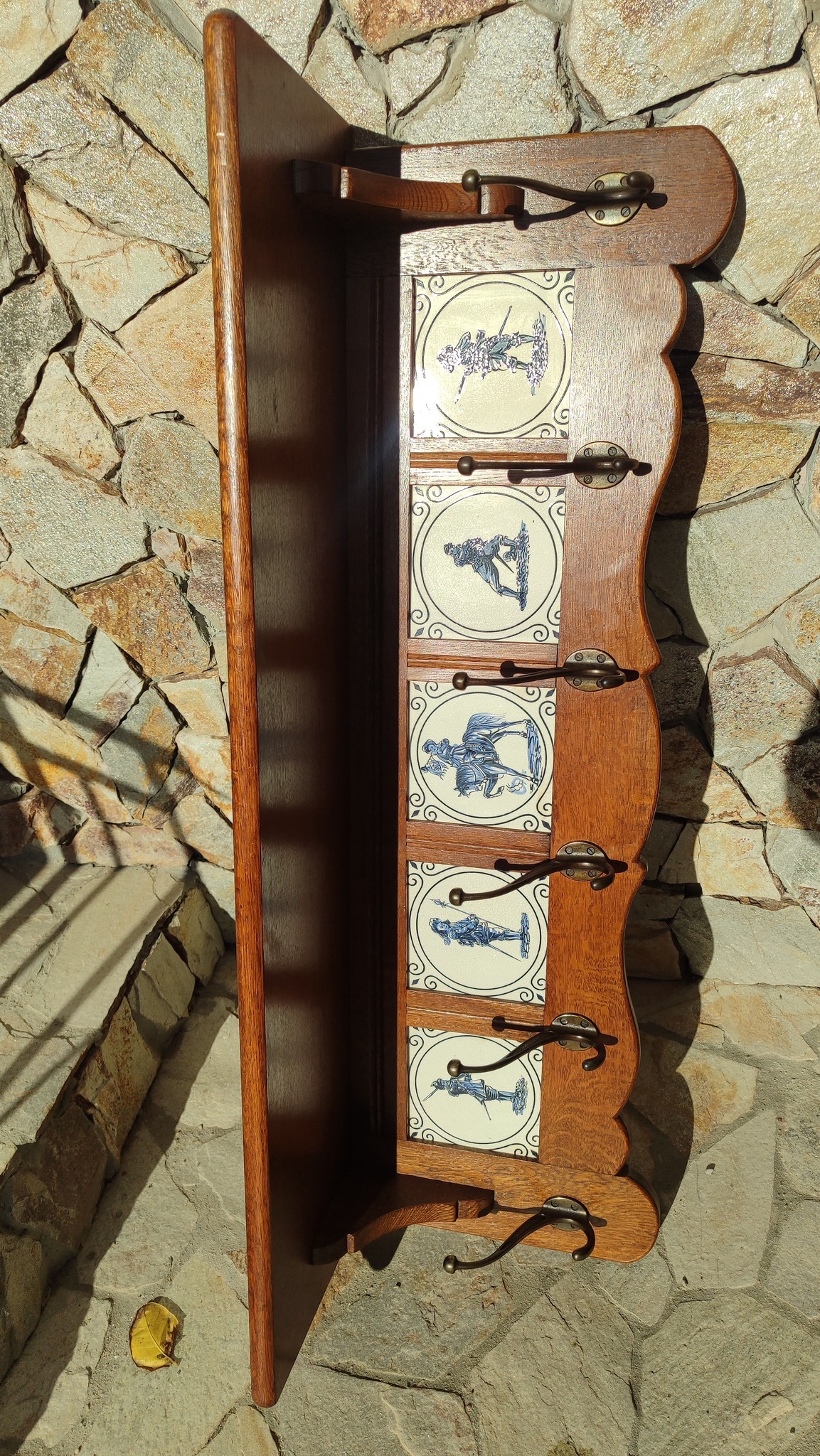Стенна дървена закачалка с красиви орнаменти и 4 бр двойни окачвачи!