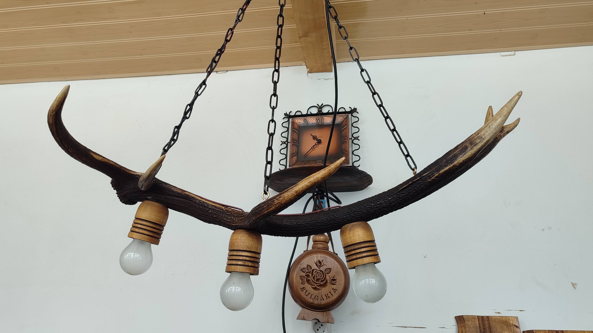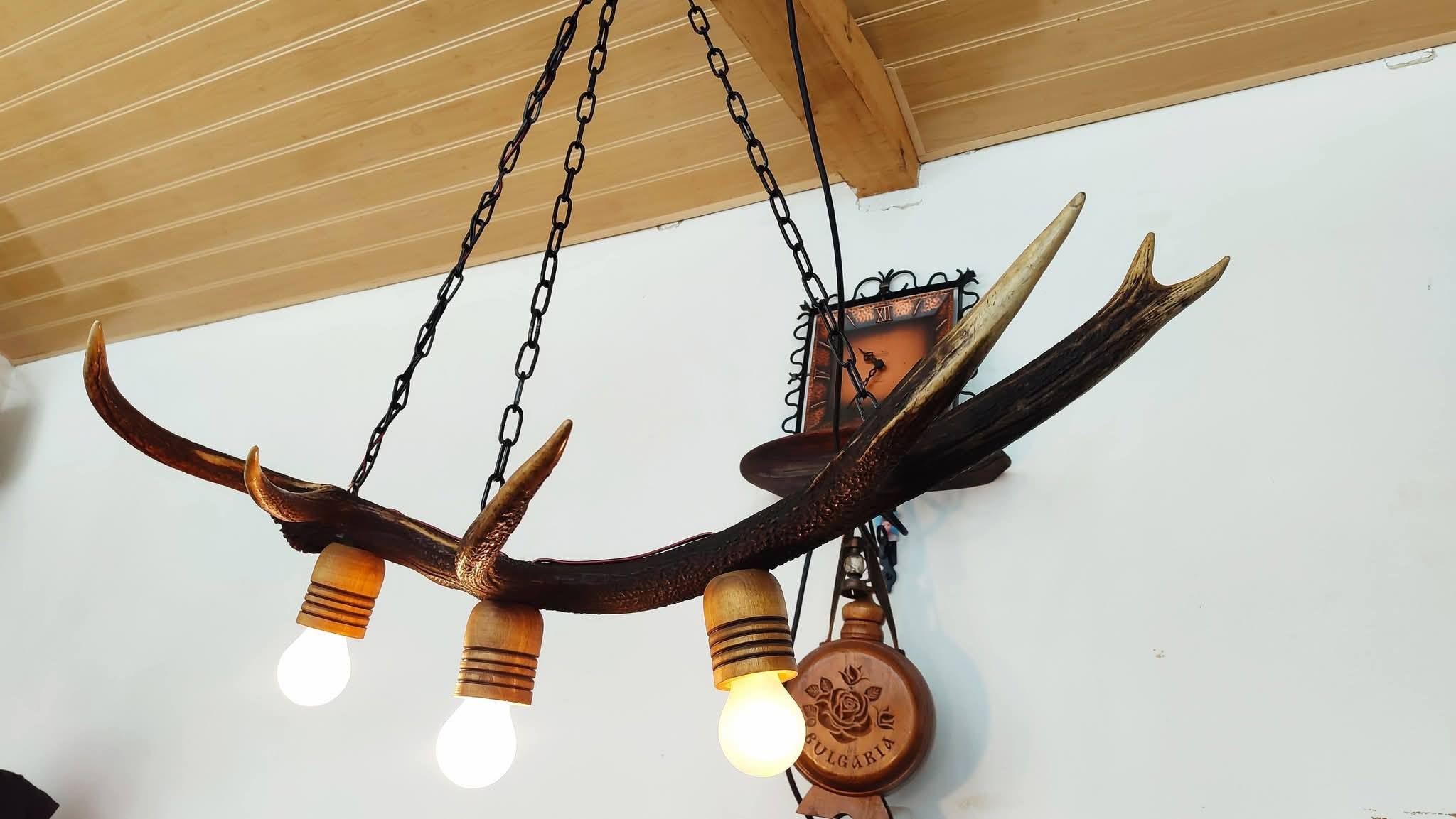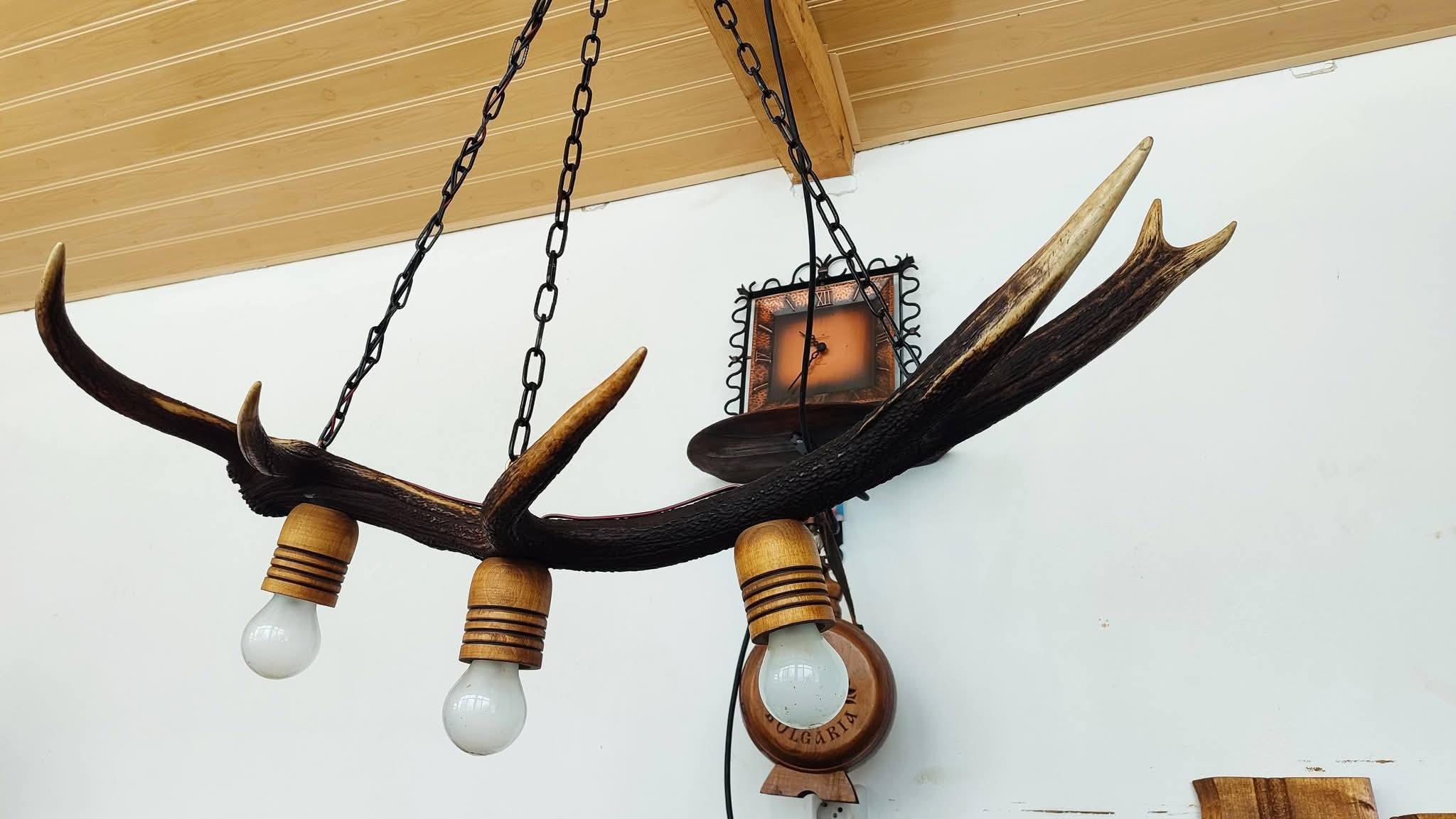 Полилеи от автентични реставрирани колела от каруци с дървени чашки и лед осветление!