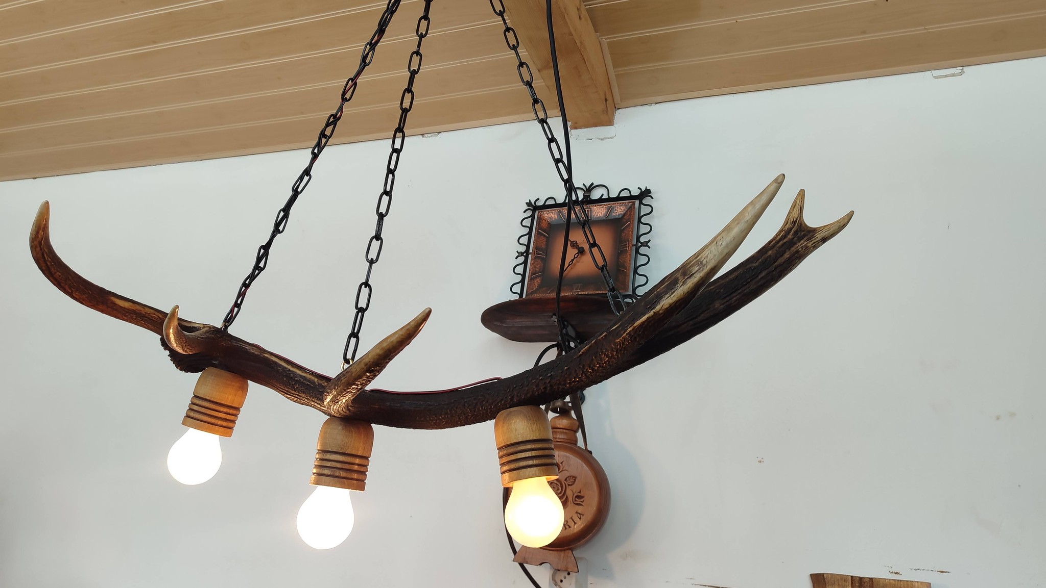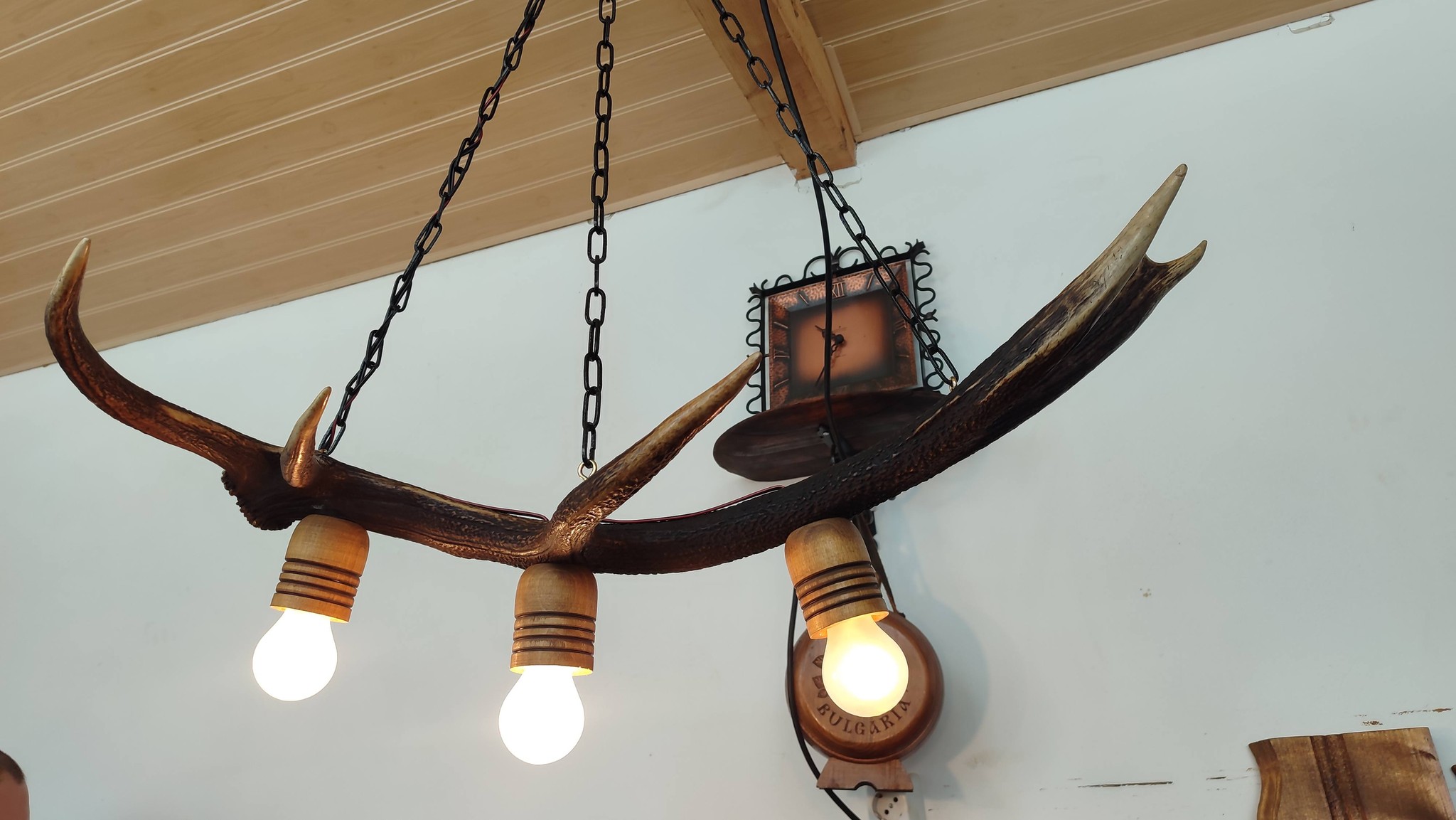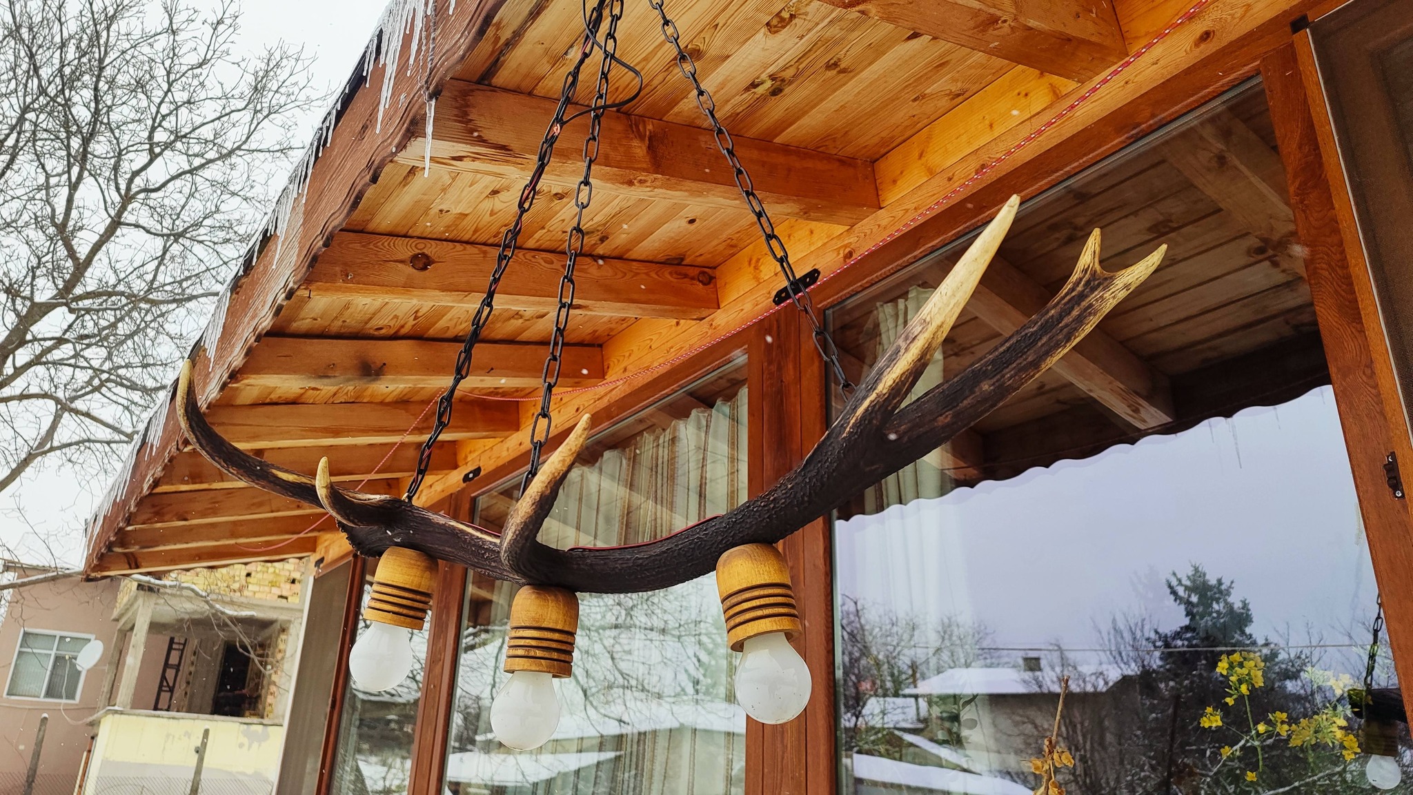 Полилеи от автентични реставрирани колела от каруци с дървени чашки и лед осветление!